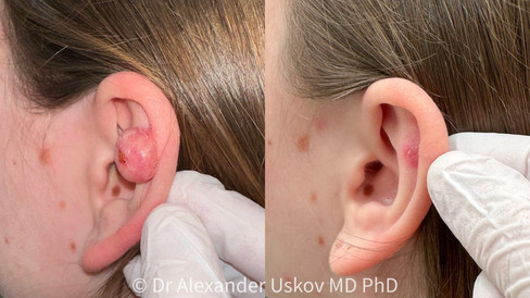 At Dr. Uskov’s clinic, laser systems across all relevant wavelengths are used, as in leading global centers for keloid treatment.