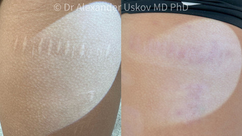 Наша цель — максимальное улучшение структуры и внешнего вида рубцов при минимальном риске осложнений (пигментации, гипертрофии, рубцовых рецидивов и др.).